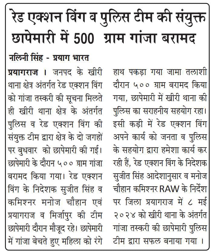 Successful meeting with Prayagraj and Mirzapur police station from Raid in illegal Ganja selling from Raid Action Wing Foundation